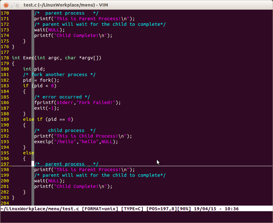 在函数中,我们可明显的看到,在fork执行完成之后,我们通过execlp()加载了可执行程序hello.