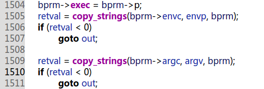 接着将文件名,环境变量,命令行参数拷贝到新分配的页面中: