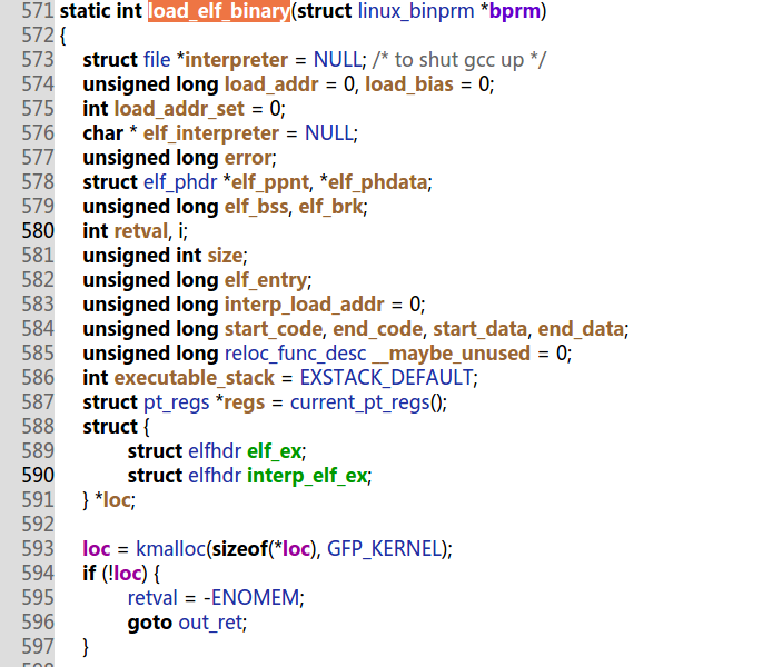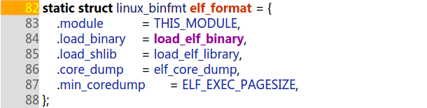 对于ELF格式的可执行文件fmt->load_binary(bprm);执行的应该是load_elf_binary其内部是和ELF文件格式解析的部分需要和ELF文件格式标准结合起来阅读