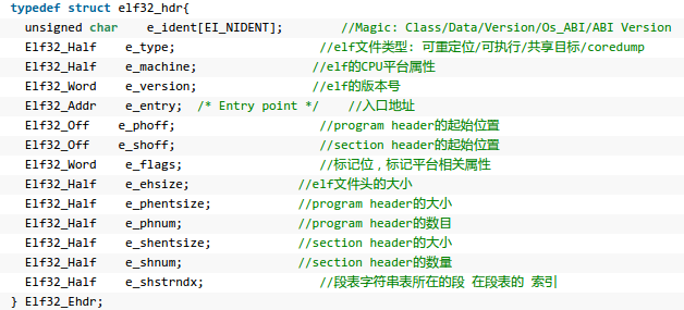 整个ELF映像就是由文件头、区段头表、程序头表、一定数量的区段、以及一定数量的部构成,而ELF映像的装入/启动过程,则就是在各种头部信息的指引下将某些部或区段装入一个进程的用户空间,并为其运行做好准备(例如装入所需的共享库),最后(在目标进程首次受调度运行时)让CPU进入其程序入口的过程。接着是对elf_bss 、elf_brk、start_code、end_code等等变量的初始化。这些变量分别纪录着当前(到此刻为止)目标映像的bss段、代码段、数据段、以及动态分配“堆” 在用户空间的位置。除start_code的初始值为0xffffffff外,其余均为0。随着映像内容的装入,这些变量也会逐步得到调整。